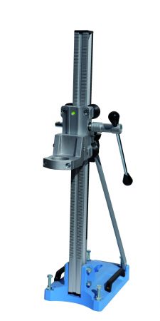 Statyw aluminiowy, mocowanie na ucho, maksymalny zakres wiercenia 162 mm, opcjonalnie – z płytą dystansową – do 200 mm.